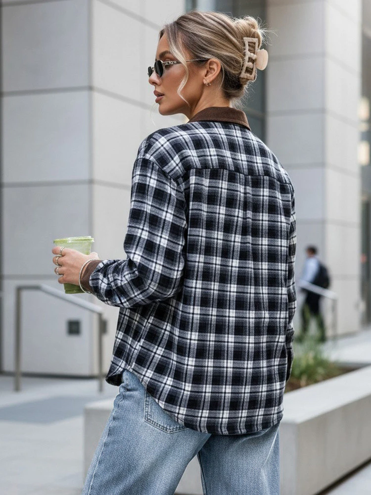 Koszula dobrze komponuje się z jeansami, czarnymi spodniami oraz legginsami. Można nosić ją zapiętą w bardziej uporządkowanej stylizacji lub rozpiętą jako lekką narzutkę na top. Swobodny fason ułatwia warstwowanie w chłodniejsze dni.