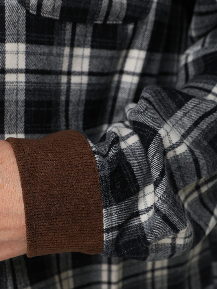 Kołnierz oraz mankiety stanowią element kontrastowy wizualnie, zachowując spójność stylistyczną z całością koszuli.
