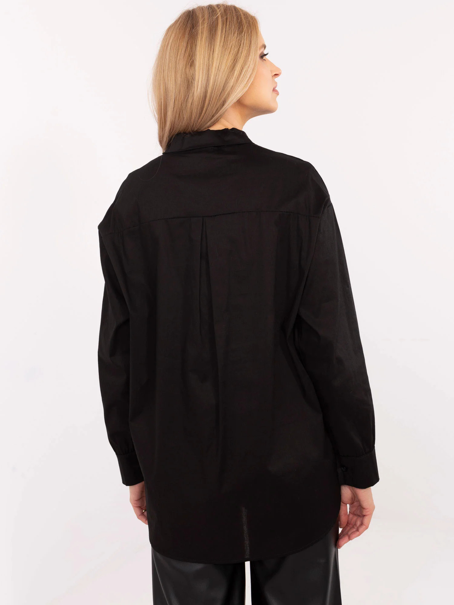 Wymiary koszuli w rozmiarze one size mierzone na płasko: szerokość pod pachami - 61 cm, szerokość w biodrach - 63 cm, długość rękawa - 54,5 cm (od szwu), długość całkowita - 69 cm.