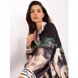 Wymiary koszuli w rozmiarze one size mierzone na płasko: szerokość pod pachami - 78 cm, długość rękawa - 55 cm (od szwu), szerokość w biodrach - 78 cm, długość całkowita - 78 cm (przód), długość całkowita - 101 cm (tył) .