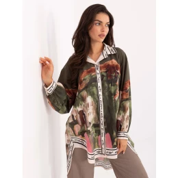 Wymiary koszuli w rozmiarze one size mierzone na płasko: szerokość pod pachami - 78 cm, długość rękawa - 55 cm (od szwu), szerokość w biodrach - 78 cm, długość całkowita - 78 cm (przód), długość całkowita - 101 cm (tył) .
