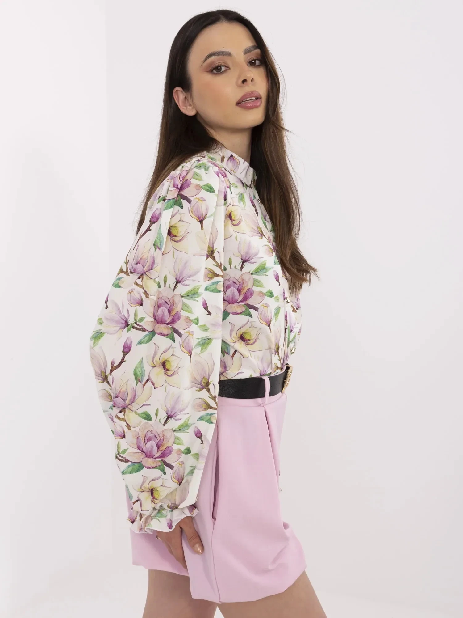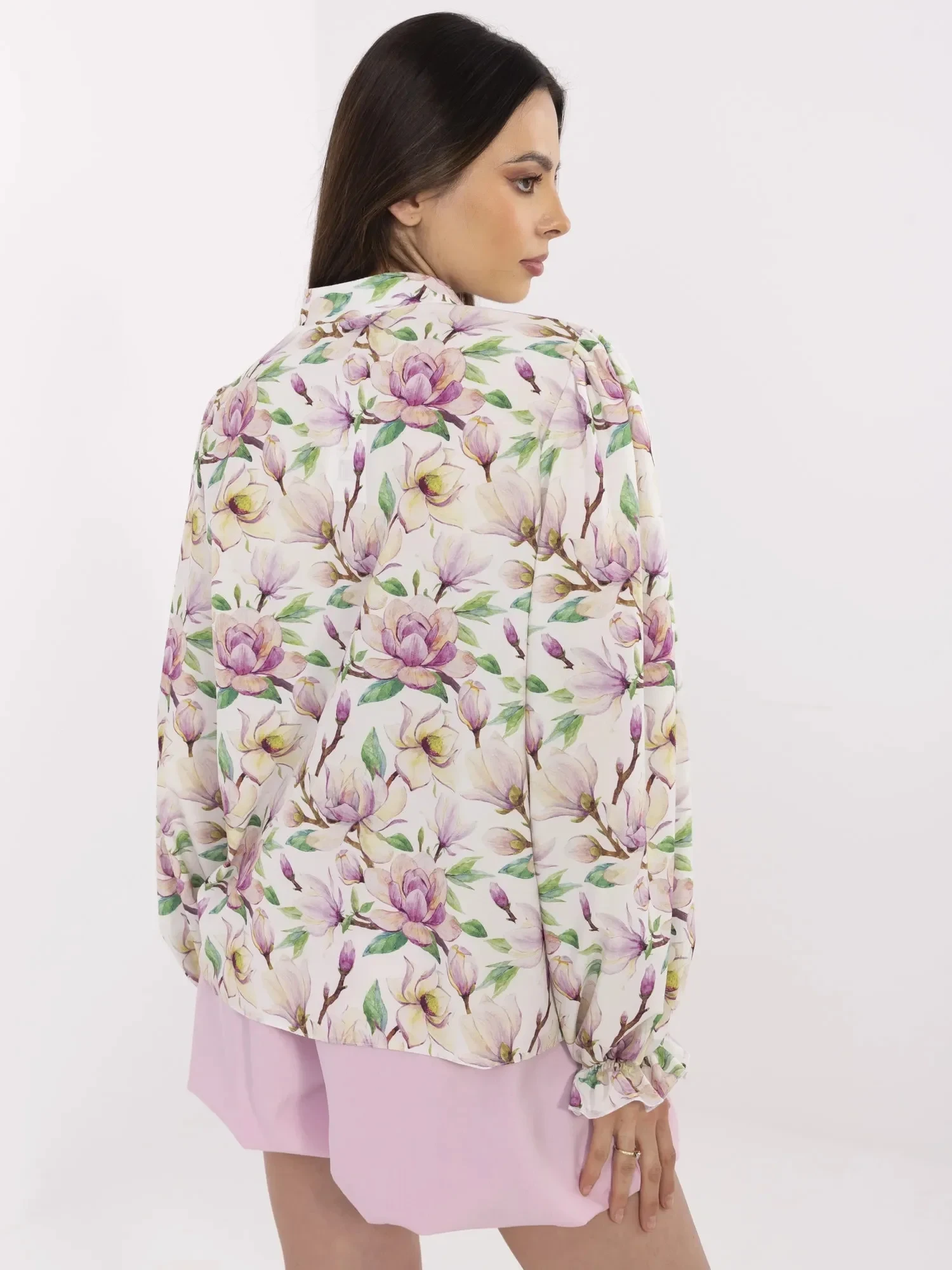 Wymiary koszuli w rozmiarze S/M mierzone na płasko: szerokość pod pachami - 58 cm, długość rękawa - 64 cm (od szwu), długość całkowita - 68 cm, szerokość w biodrach - 59 cm.