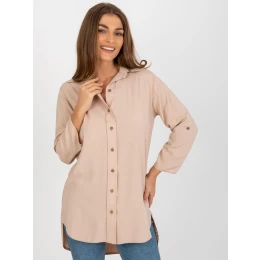 Beżowa asymetryczna koszula klasyczna z wiskozy .