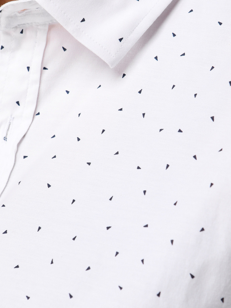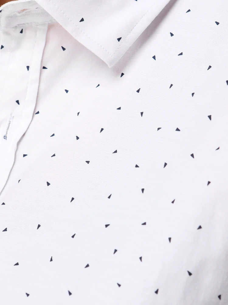 Koszula męska o dopasowanym kroju slim fit podkreśla sylwetkę i nadaje stylizacji elegancki, nowoczesny charakter. Wykonana z bawełny z dodatkiem elastanu zapewnia komfort noszenia oraz odpowiednią elastyczność. Drobny, geometryczny wzór przełamuje klasyczną formę i wprowadza subtelny detal. Model sprawdzi się zarówno w stylizacjach biznesowych, jak i podczas mniej formalnych okazji.
