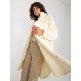 Ecru długa koszula futrzana z kołnierzykiem RUE PARIS .