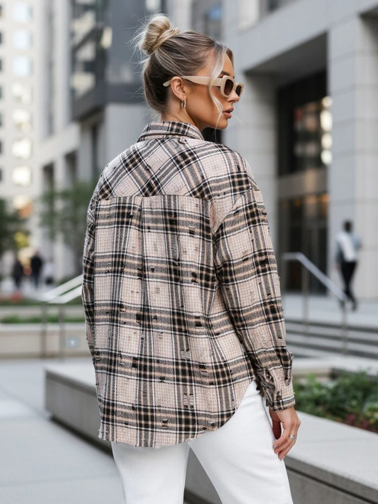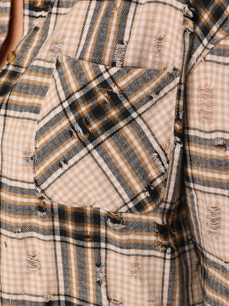 Koszula w kratę damska z przetarciami beżowa FashionStreet DY0485