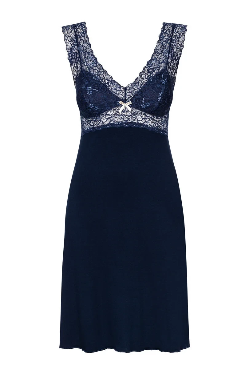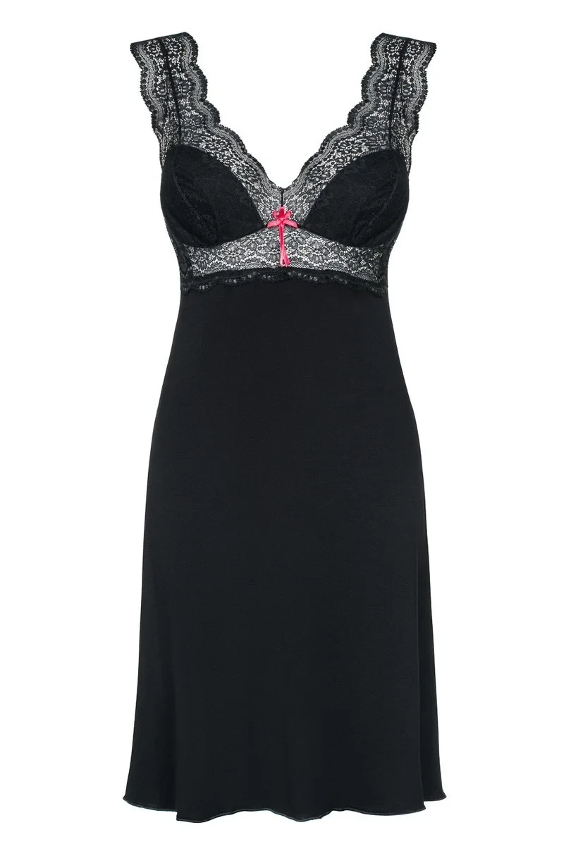<p>Koszulka damska z przyjemnej tkaniny wiskozowej 95% z dodatkiem elastanu 5% i poliamidu, na szerokich, koronkowych ramiączkach. Na biuście delikatna koronka o kwiatowym motywie, podszyta tkaniną wiskozową.</p>