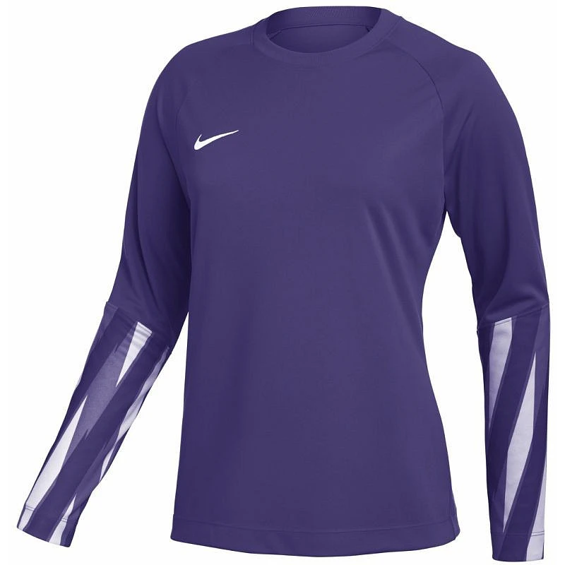 Koszulka damska Nike Dri-Fit Park V Stadium fioletowa HV8316 507 Koszulka bramkarska damska Nike sprawdzi się podczas rozgrywek meczowych. Szybkoschnący materiał wsparty technologią Dri-FIT odprowadza wilgoć. Koszulka o dopasowanym kroju. Dekolt ze ściągaczem. Raglanowe rękawy. Grafika na części rękawów. Materiał: 100% poliester