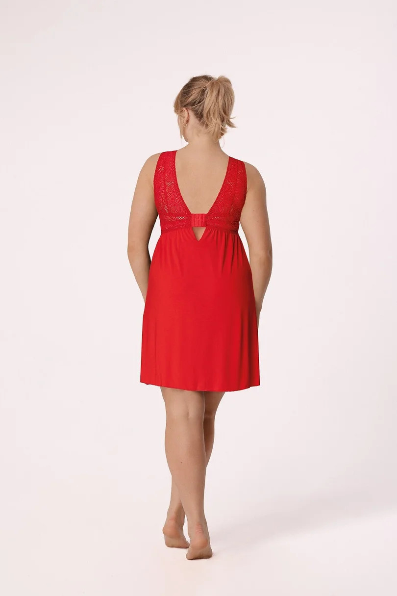 Poczuj się wyjątkowo w koszulce nocnej Desire Big, stworzonej z myślą o kobietach ceniących elegancję i komfort. Wykonana z miękkiej wiskozy z dodatkiem elastycznych włókien, idealnie dopasowuje się do sylwetki, zapewniając pełną swobodę ruchów i wygodę przez całą noc. Miseczki ozdobione delikatną koronką subtelnie podkreślają biust, nadając całości zmysłowy charakter. Dodatkowym atutem jest zapinanie na plecach, które zapewnia jeszcze lepsze dopasowanie i wyjątkowy wygląd. Koronkowe ramiączka dodają lekkości i romantycznego uroku.