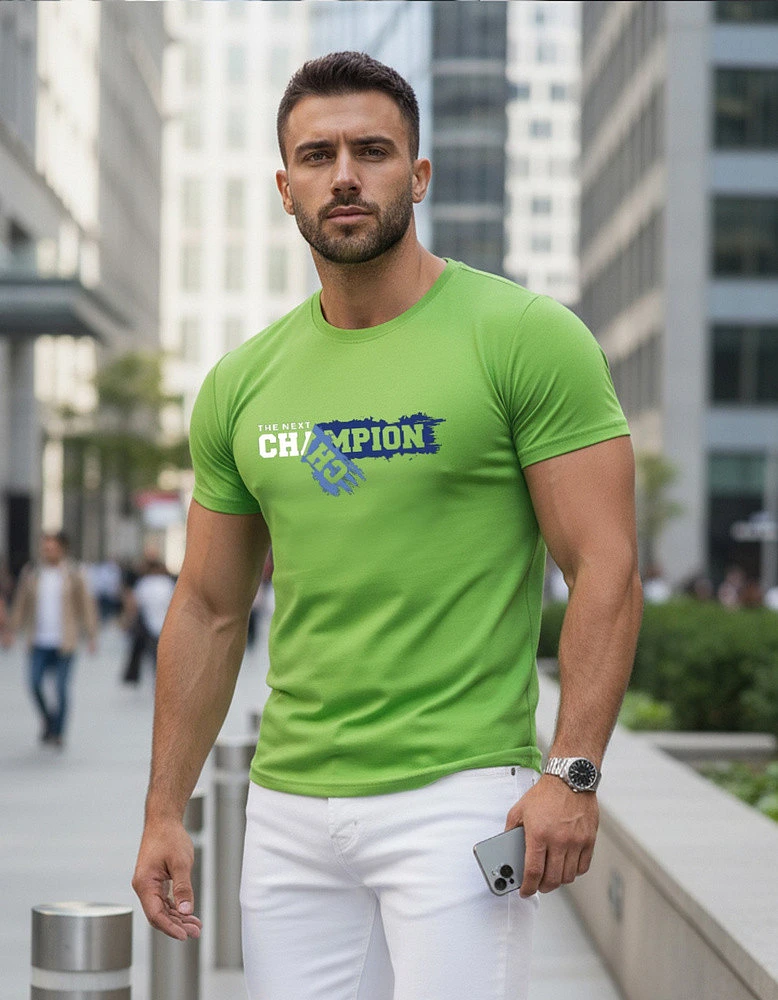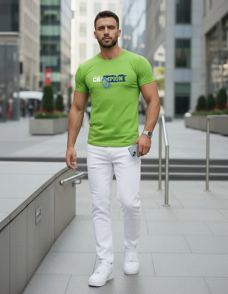 Nowoczesna koszulka z dynamicznym nadrukiem stanowi ciekawy element codziennych stylizacji. Dopasowany krój podkreśla sylwetkę, zachowując wygodę podczas użytkowania. Minimalistyczna forma w połączeniu z graficznym akcentem wpisuje się w miejski styl.