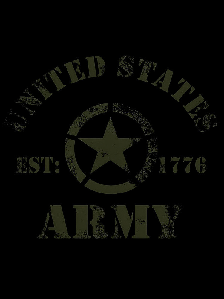 Nadruk ma charakter militarny i zawiera napisy „United States Army” oraz „EST. 1776” z centralnym motywem gwiazdy, co nadaje koszulce surowy i wyrazisty wygląd.