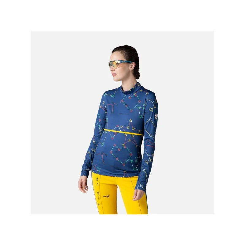 Damska bluzka Rossignol Saturn przynosi kosmiczną energię do Twojego stylu na stoku. Zainspirowana przestrzenią kosmiczną i stworzona w oparciu o kreatywną wizję francuskiego projektanta mody, Jean-Charlesa de Castelbajaca, ożywia Twój wygląd dzięki konstelacji barw.