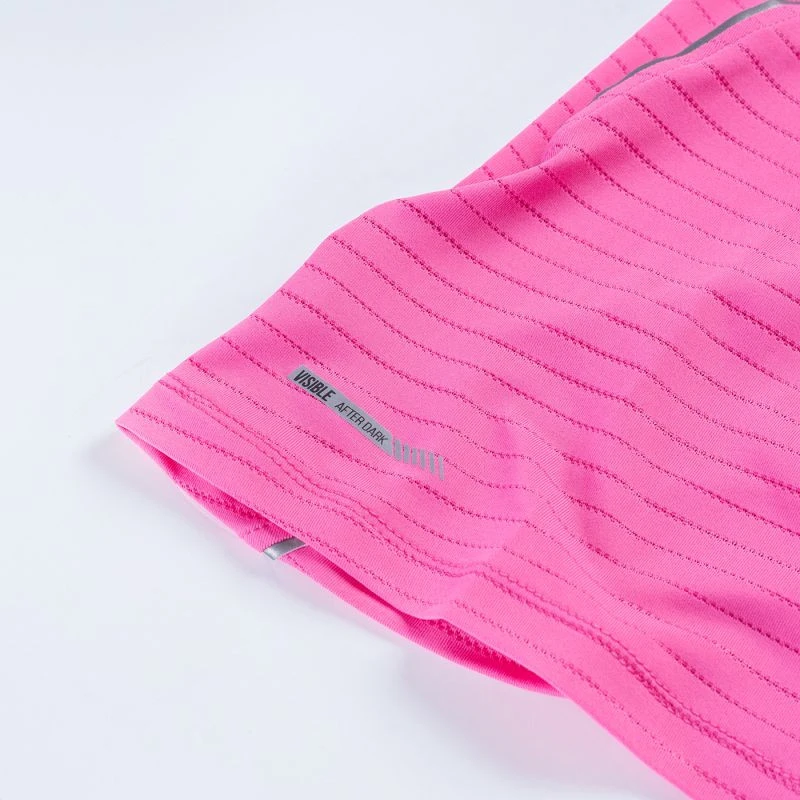- Płaskie szwy niwelują powstawanie otarć. Dodatkową zaletą jest perforowana struktura materiału, który zwiększa przewiewność koszulki.