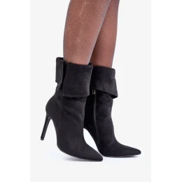 Kotníkové boty na jehlovém podpatku s ohrnutým svrškem černé Luxira