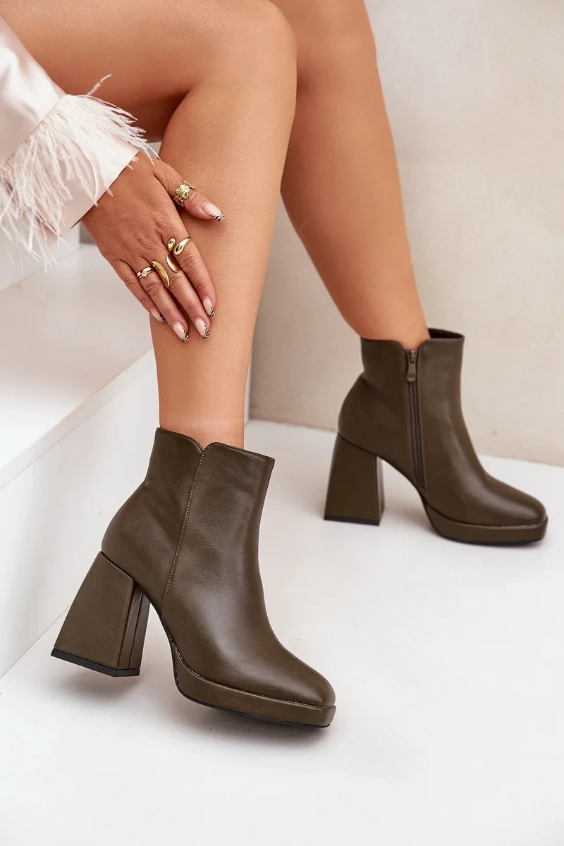 Kotníkové boty na vysokém sloupkovém podpatku z ekologické kůže tmavě zelené Selarae