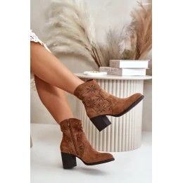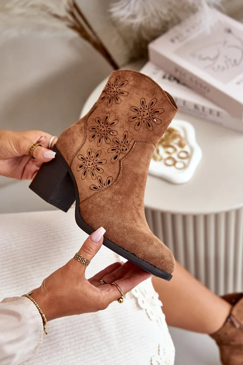 Kotníkové boty s ažurovým svrškem na podpatku, z eko semiše, hnědé Nevishiia