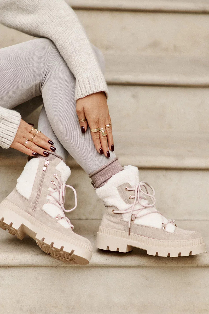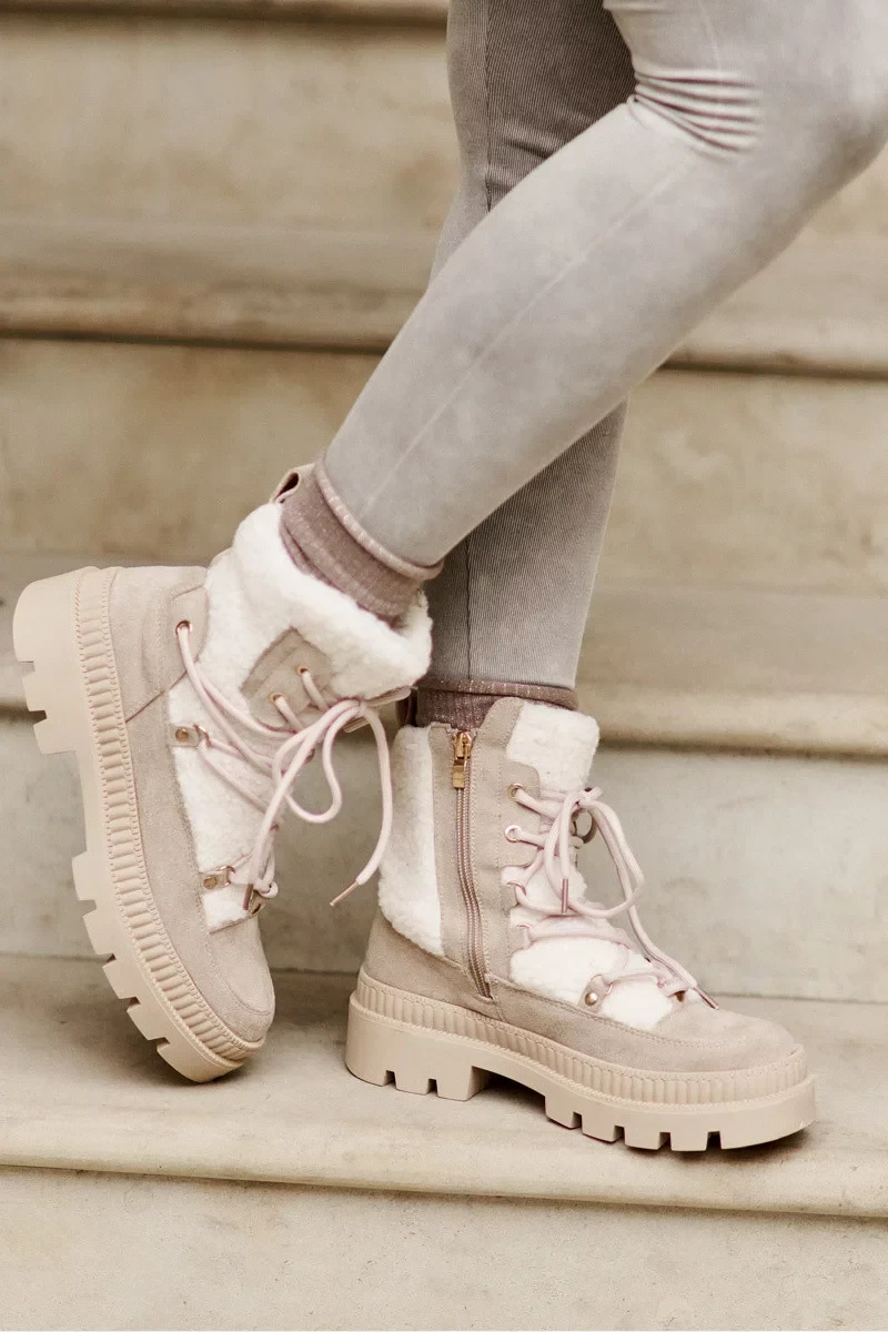 Kotníkové boty s beránkovým kožíškem béžové Merilana