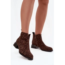 Dámské kotníkové boty vyrobené z přírodního semiše jsou spojení elegance a módního charakteru. Model ohromí stylovým leopardím potiskem, který dodává celku výraznost a ženskou zpověď. Umístěny na stabilním kostkovém podpatku, zajišťují pohodlí a jistotu kroku. Vnitřek bot je mírně vyhříván obuvním dekou, což zaručuje komfort v chladnějších dnech. Zaoblené špičky a dekorativní šití lemující obepínání lýtka jim dodávají elegantní vzhled. Boty jsou na zip, což usnadňuje obouvání. Ideální model pro ženy, které rády kombinují klasiku s trochou dravého stylu – skvělá volba pro každodenní i elegantnější outfity. Při výběru velikosti prosíme řídit se tabulkou velikostí. Při výběru velikosti se řiďte tabulkou velikostí.