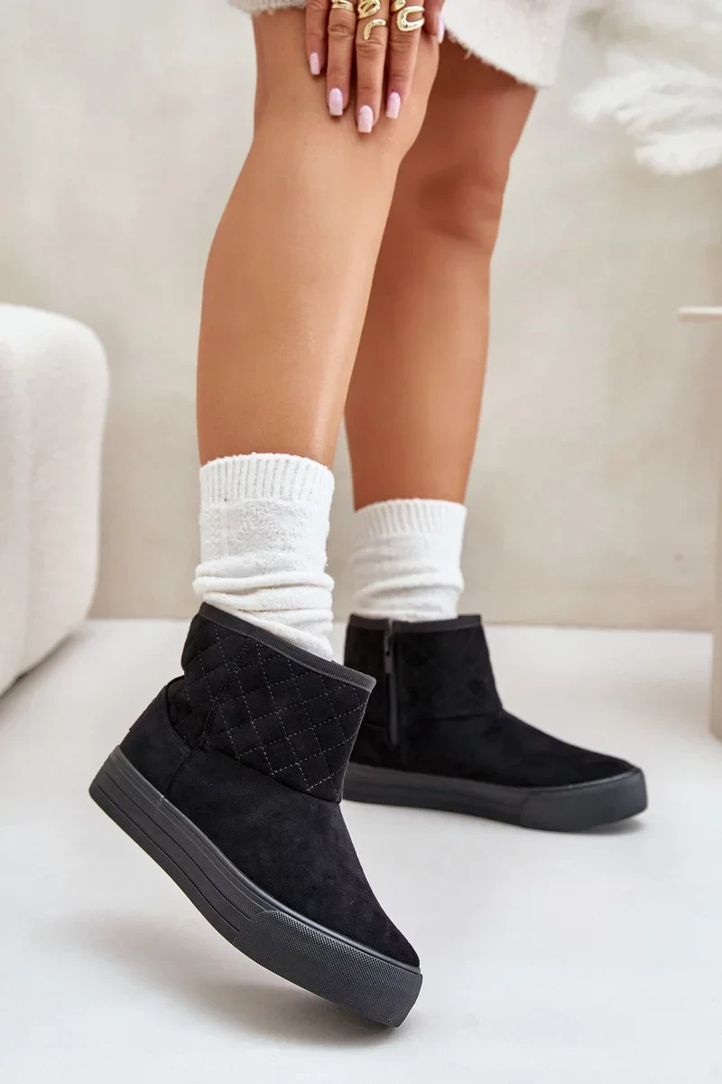 Kotníkové sněhule na zip zateplené kožíškem Big Star černé