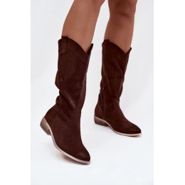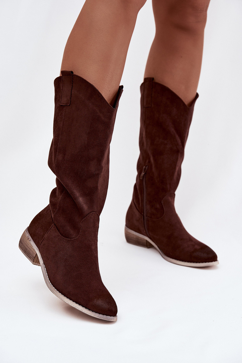 Kovbojky Na Nízkém Podpatku Z Eko Semiše Čokoládové model 21757733 - Boto