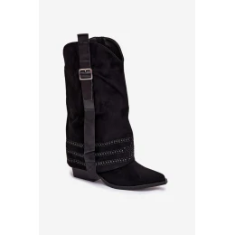 Dámské kozačky Camilora v černém provedení kombinují výrazný western styl s moderním elegantním nádechem. Detailní ozdoba a kovová spona dodávají botám výrazný a módní charakter. Stabilní podpatek (sloupek) zajišťuje pohodlnou a stabilní chůzi, zatímco vyšší svršek poskytuje podporu a stylový vzhled vhodný se sukněmi, šaty i úzkými kalhotami.