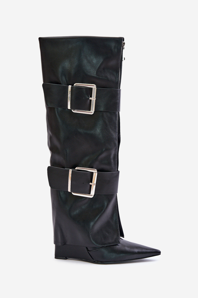 Kozačky ke kolenům na klínu s ohrnutým svrškem a sponami Tamirla