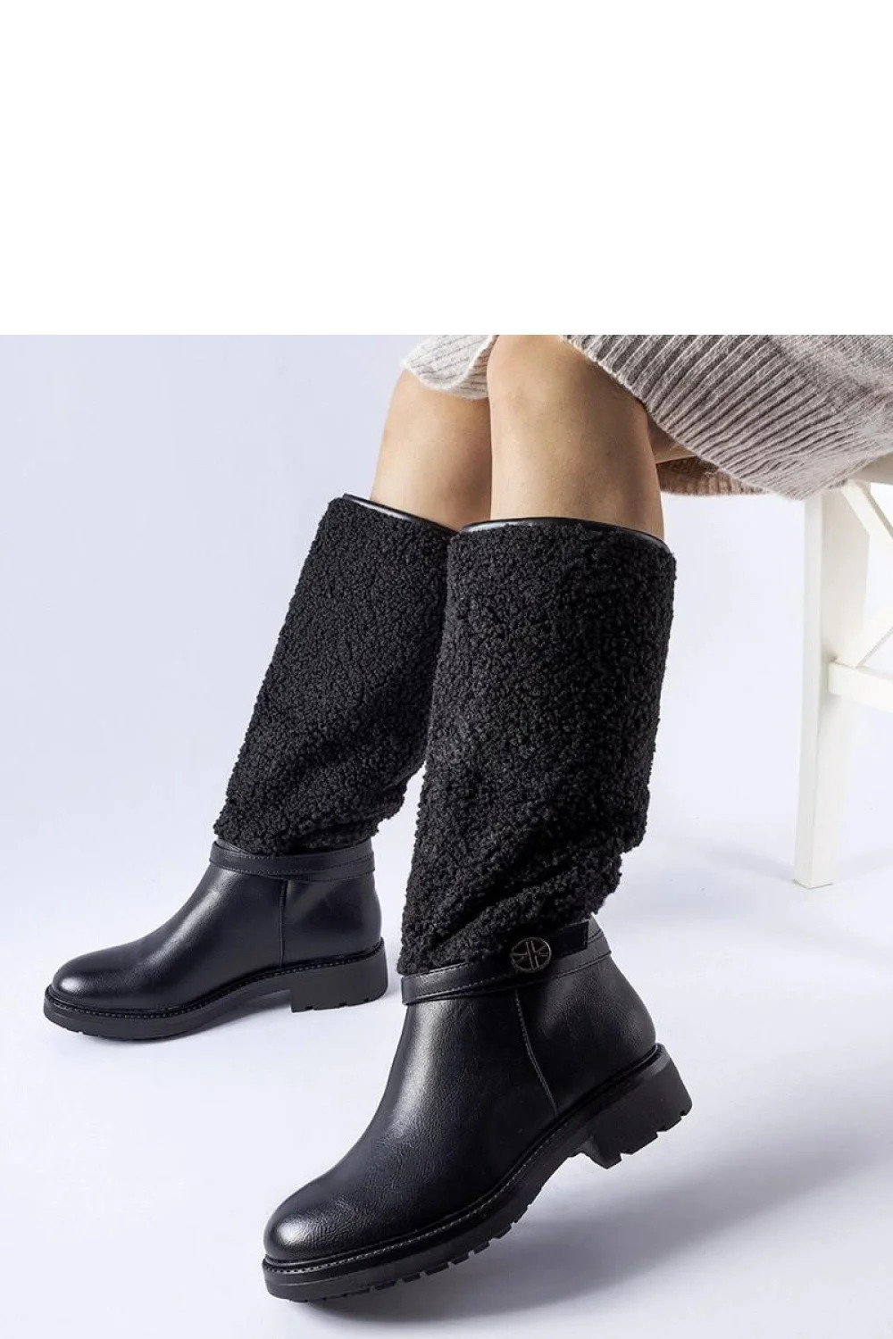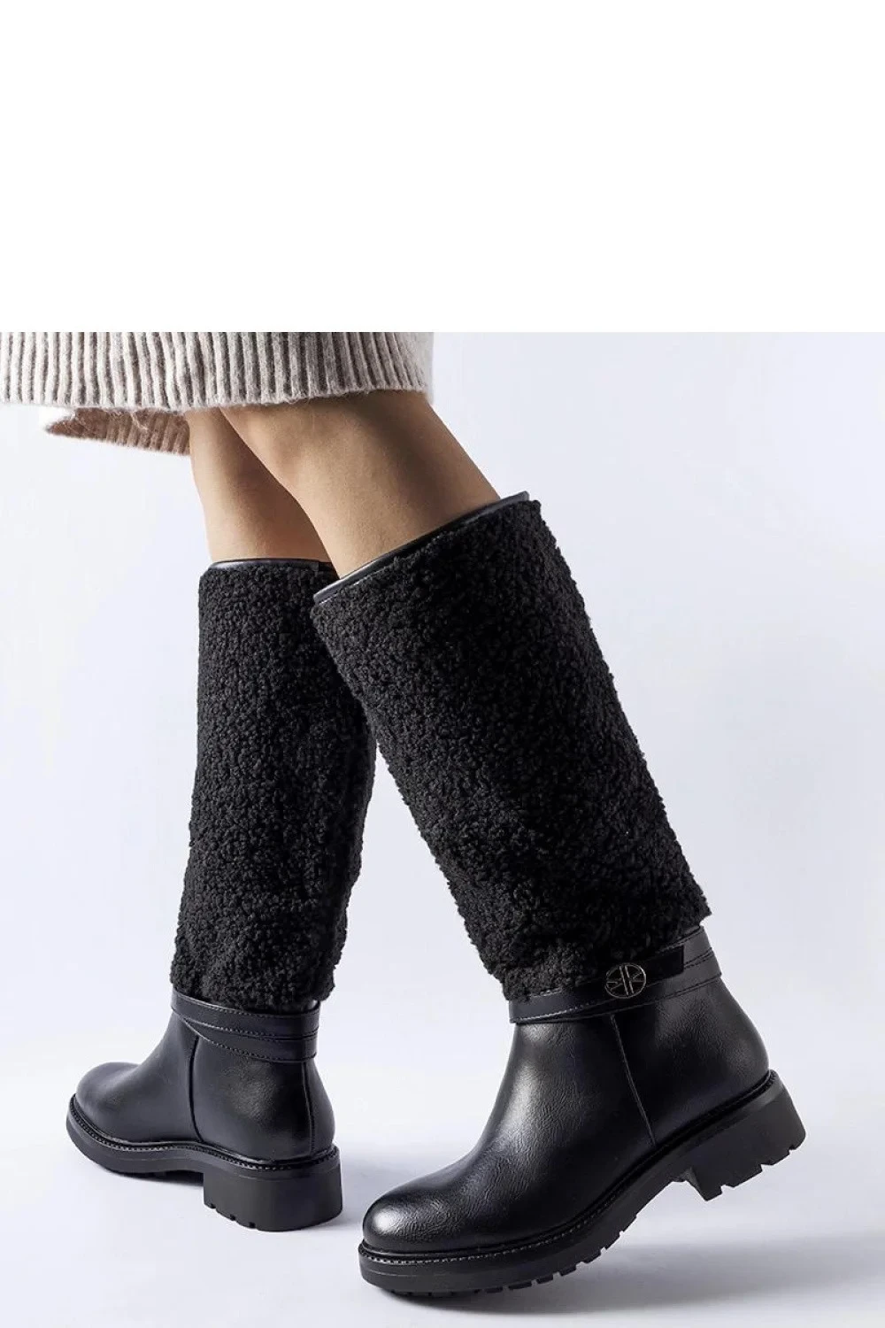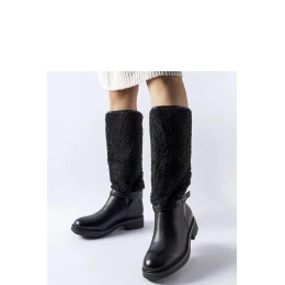 Černé kozačky zdobené kožešinou Plains jsou skvělou volbou na zimu. Jejich vyhřívaný interiér poskytuje teplo i v nejchladnějších dnech a konstrukce z gumy zajišťuje odolnost proti vlhkosti a skvělou ochranu před deštěm a sněhem. Kulatý nos jim dodává univerzální design, který se hodí jak k volnočasovým, tak k elegantnějším outfitům. Kozačky mají plochý podpatek, což zaručuje pohodlí i při dlouhém nošení. Dostupné za atraktivní cenu, jsou ideální volbou pro ty, kteří hledají stylovou obuv na zimu. Materiál z vnějšku je ekologická kůže, výška je 42 cm a podrážka je vyrobena z černé gumy. Zapínání na zip usnadňuje rychlé obouvání. Kolekce je určena pro podzim/zimu.