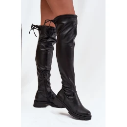 Dámské kožené kozačky jsou módní a praktický návrh na chladnější dny. Vysoká štíhlá nohavice do kolena krásně zdůrazňuje nohy a šněrování nahoře umožňuje lépe přizpůsobit obuv. Model s nasunutím, s dodatečným zipem na dně, usnadňuje obouvání a svlékání. Vnitřek je vyztužený na úrovni chodidla, což zajistí pohodlí a teplo, díky čemuž se kozačky skvěle hodí jak do každodenních, tak do elegančnějších stylizací.
