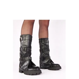 Elegantní, natahovací kozačky vyrobené z vysoce kvalitní ekologické kůže, které spojují pohodlí s módním designem. Model se vyznačuje otočeným límcem zdobeným dekorativními sponami, které obuvi dodávají charakter a moderní vzhled. Navíc je na vnější straně umístěn zapínací zip, který slouží jako ozdoba a zdůrazňuje výjimečný styl kozaček. Kozačky mají kulatou špičku a pohodlný platformový podpatek o výšce 5 cm, který poskytuje pohodlí během chůze. 29 cm vysoká štíhlá noha perfektně padne na nohu a chrání před chladem. Vnitřek je vyložen teplým materiálem, díky čemuž se boty skvěle hodí do chladnějších dnů. Textilní vložka zajišťuje další pohodlí a měkkost při nošení. Je to ideální volba pro ženy hledající stylové, funkční a pohodlné kozačky na podzimní a zimní sezónu.