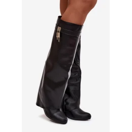 Dámské kozačky vyrobené z ekologické kůže semiše jsou ideální kombinací pohodlí a elegance. Umístěné na klíně. Model se zapíná na praktický zip a efekt otočeného límce mu dodává výjimečný charakter. Celkový vzhled doplňuje pásek s ozdobným prvkem umístěným nahoře, který představuje decentní dekorační prvek. Jsou to stylové kozačky, které se skvěle hodí jak do každodenních, tak elegantních stylizací. materiál koženka