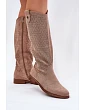 Kozačky Na Plochém Podpatku S Děrovaným Vzorem Béžové S.Barski HY51-062