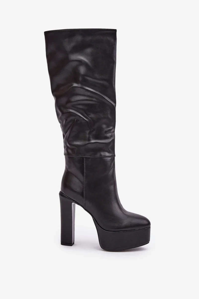 Kozačky na podpatku a platformě z eko kůže černé Felilorn