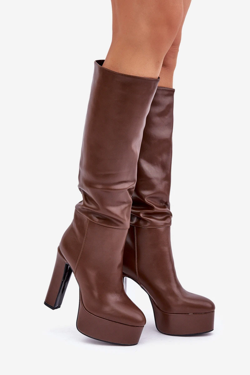 Kozačky Na Podpatku A Platformě Z Eko Kůže Hnědé model 21681401 - Boto