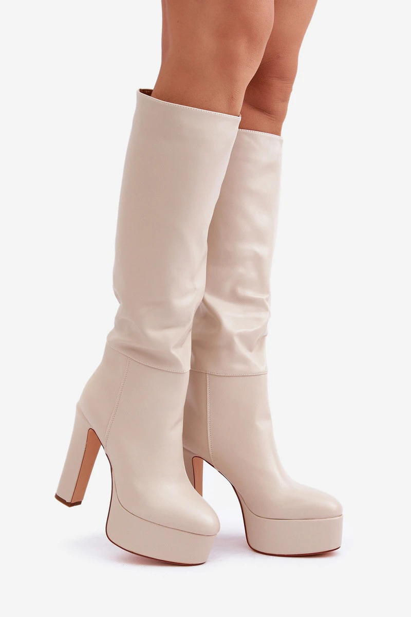 Kozačky Na Podpatku A Platformě Z Eko Kůže Světle Béžové Felilorn