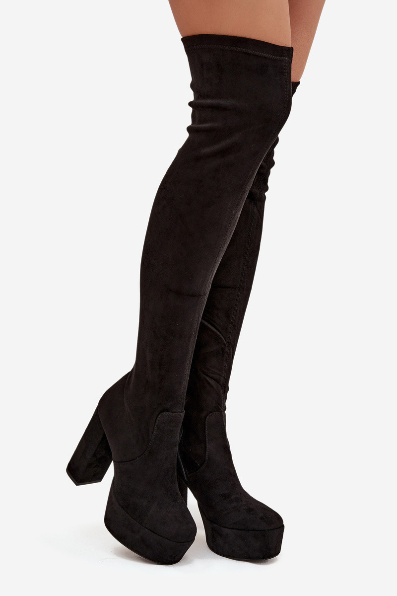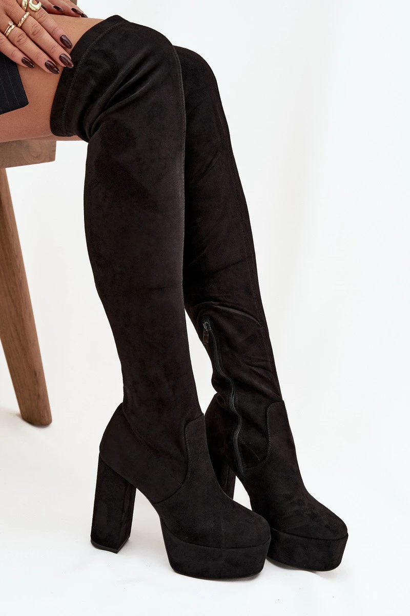 Kozačky na podpatku a platformě za koleno ekozamsové černé Amareen