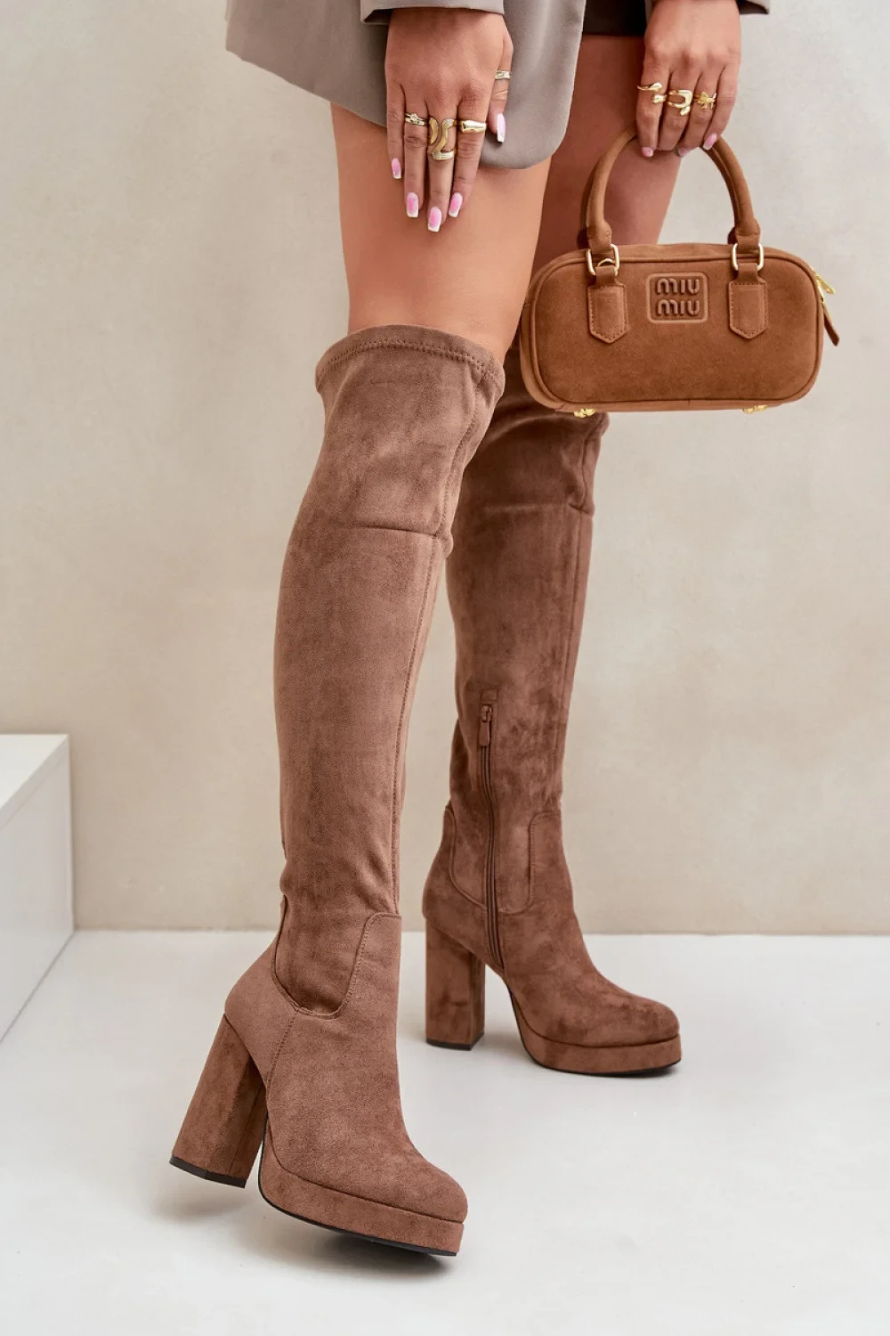 Dámské kozačky z ekokože jsou skvělým návrhem pro milovnice módní obuvi na chladnější dny. Umístěné na podpatku ve formě sloupku a platformě. Kozačky jsou nasazovací, ale pro větší pohodlí mají navíc zip na dolní části povalové nohy, usnadňující obouvání. Špičky jsou zaoblené. Vnitřek je vyložený pouze na výšce nohy. Ideální pro styling s šaty nebo sukněmi.