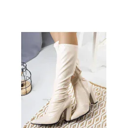 Béžové kozačky na jehlovém podpatku Velass jsou dokonalým doplňkem vašeho podzimně-zimního stylingu. Díky vysokému sloupku vypadají fenomenálně! Jejich špičatá špička a přiléhavý svršek krásně zvýrazní nohy ;). Svršek je vyroben z kvalitní ekologické kůže, která našim nohám zajistí pohodlí. Vnitřní strana kozaček je zakončena tenkým materiálem, který zpříjemňuje jejich nošení. Číslování je standardní, takže si stačí vybrat svou velikost. Boty jsou vysoké 46 cm, nejsou zateplené a podrážka je z plastu v černé barvě. Díky zapínání na zip se snadno nazouvají a patří do kolekce Podzim/Zima. Výška podpatku 10,5 cm