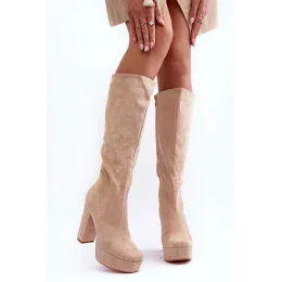 Kozačky na podpatku model 20646526 béžové Step in style - Inello