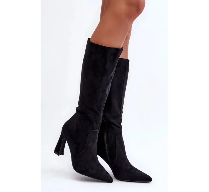 Kozačky na podpatku model 20776998 černé Step in style - SWEET SHOES