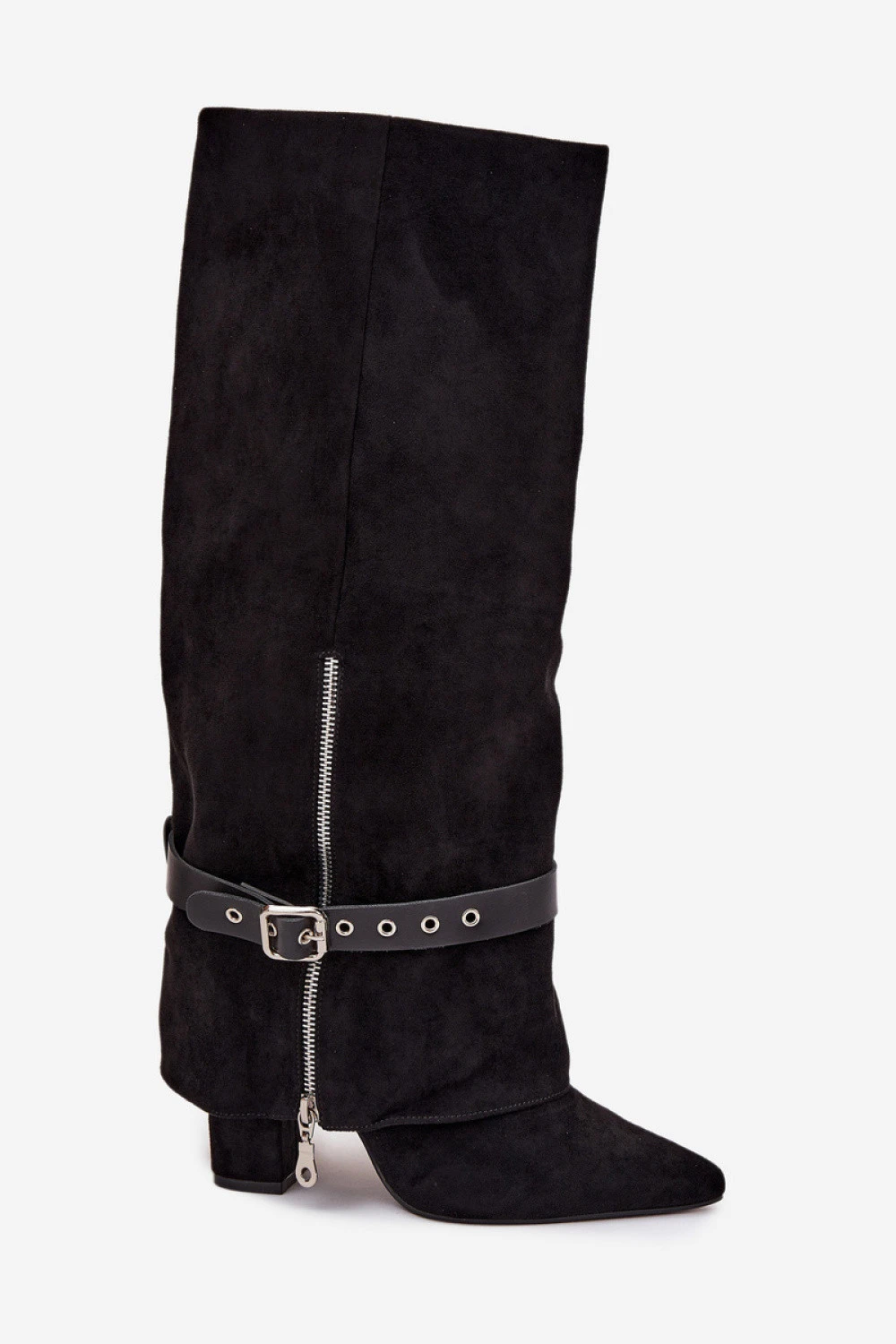Zatímco dámské kozačky nad kolena jsou elegantní a stylovou nabídkou, která spojuje klasiku s moderním akcentem. Model se špičatými špičkami a sloupkovým podpatkem jemně zeštíhluje siluetu, zatímco svršek, který přechází na podpatek, dodává celé věci výjimečný charakter. Další pásek s ozdobnou sponou lze stáhnout nebo libovolně nastavit, což mění styl bot a přizpůsobuje je různým stylizacím. Ideální k šatům, sukním i elegantním casualovým soupravám přinášejí módní, ženský akcent do každého šatníku.