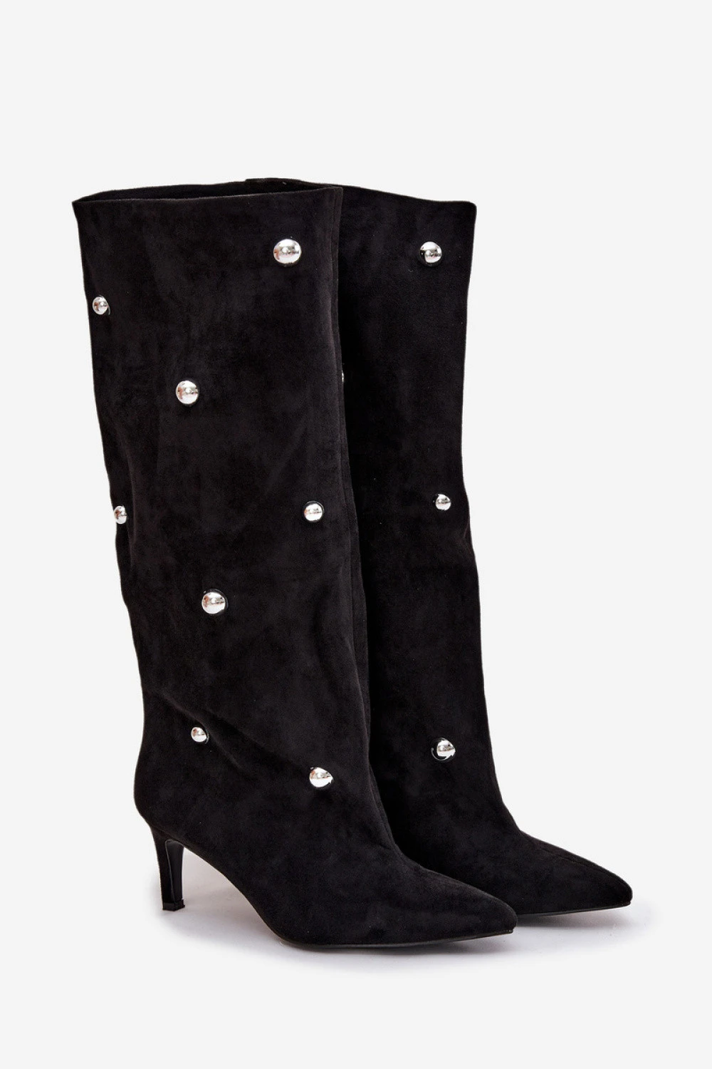 Dámské kozačky vyrobené z ekokože. Štíhlý podpatek a špičaté špičky krásně zjemňují postavu, zdůrazňují ženský charakter obuvi. Model se snadno obuje a zlaté ozdoby dodávají výjimečný akcent. Jsou to ideální kozačky na speciální příležitosti a večerní outfity, které vás vyznačí elegancí a stylovým vzhledem.