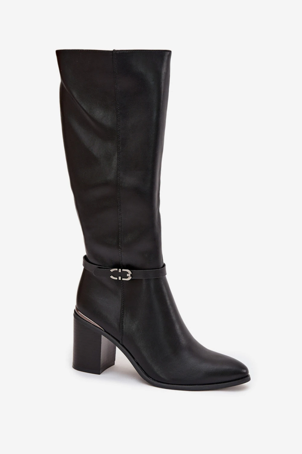 Boty musketyrky pro ženy vyrobené z ekokože jsou stylovým návrhem pro ženy, které ocení eleganci a pohodlí v chladnějších dnech. Vysoký svršek krásně zdůrazňuje nohy, klasický podpatek ve formě sloupku dodává postavě štíhlost a zajistí stabilitu při nošení. Špička ve tvaru mandlí dodává celku decentní ženský charakter a tenký pásek s přezkou představuje jemný ozdobný akcent. Model zapínán na praktický zip je pohodlný při obouvání a nošení, a zateplený interiér zaručuje pohodlí a teplo. Skvěle doplní jak denní sestavy, tak i formálnější styly.