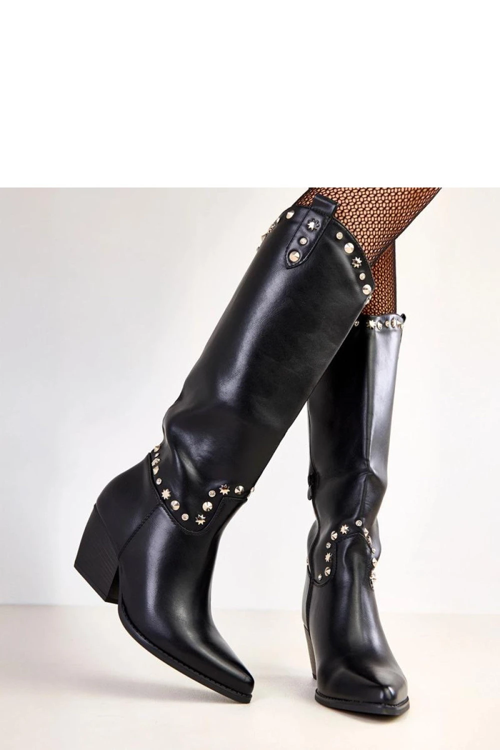 Elegantní a charakteristické dámské kozačky cowboyky, které spojují klasický střih s módním ozdobným provedením. Vyrobené z vysoce kvalitní ekologické kůže, působí elegantně a jsou snadno udržovatelné. Model s kolenem a 35 cm hřídelí krásně zdůrazňuje nohu a zároveň poskytuje pohodlí při nošení. Kulatý špičák a stabilní podpatek ve tvaru sloupku o výšce 7 cm zaručují pohodlí a opticky prodlužují postavu. Kozačky mají vyztužení, které se skvěle hodí do chladnějších dní, a zip, usnadňující obouvání. Ozdobné třpytky jim dodávají výjimečný, trochu rockový charakter, a vložka z umělé hmoty zajišťuje trvanlivost a pohodlí při nošení. Jedná se o ideální volbu pro ženy, které ocení módní vzhled, pohodlí a trochu západního stylu ve svých každodenních outfitcích.