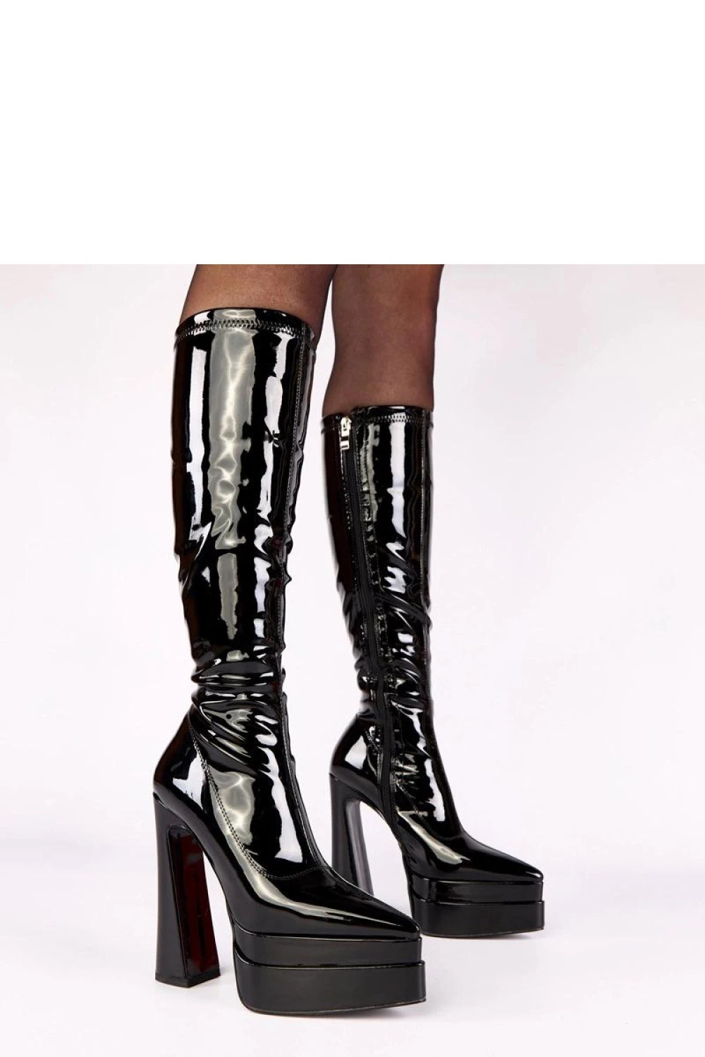 Elegantní lakované kozačky vyrobené z vysoce kvalitní ekologické kůže, které okouzlují elegancí a moderním, výrazným stylem. Jejich vysoký střih o délce 37 cm krásně zdůrazňuje nohu, vytvářející velmi ženský a odvážný vzhled. Model má špičatý nos, který přidává botám štíhlost a eleganci. Kozačky jsou umístěny na stabilním sloupkovém podpatku o výšce 15 cm a dodatečná platforma 5 cm zajišťuje pohodlí, odlehčuje nohu a usnadňuje chůzi přestože je podpatek vysoký. Vnitřek je vybaven textilní vložkou a absenci izolace dělá tento model ideálním pro přechodné období nebo pro elegantní výstupy. Praktické zapínání na zip usnadňuje obouvání a svlékání, zároveň dbá na dokonalé přizpůsobení noze. Je to nabídka pro ženy, které milují výrazný, luxusní styl a chtějí přidat svým outfitům trochu silného, módního charakteru.