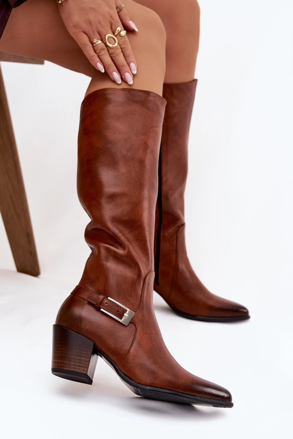 Dámské kozačky vyrobené z přírodní kůže jsou elegantní volbou pro ženy, které ocení styl a pohodlí. Model se zapínáním na zip je praktický a pohodlný při nošení. Podpatek ve tvaru useknutého sloupku poskytuje stabilitu a jemně zjemňuje postavu. Špičaté špičky dodávají celku ženský, vysoce zdobený charakter. Tepelně podšité vnitřní boty zajišťují teplo v chladnějších dnech. Dalším ozdobným prvkem je stříbrná spona umístěná na spodní části hole, která zdůrazňuje stylový a moderní vzhled modelu. Jedná se o skvělou volbu jak pro elegantní, tak pro každodenní stylizace.