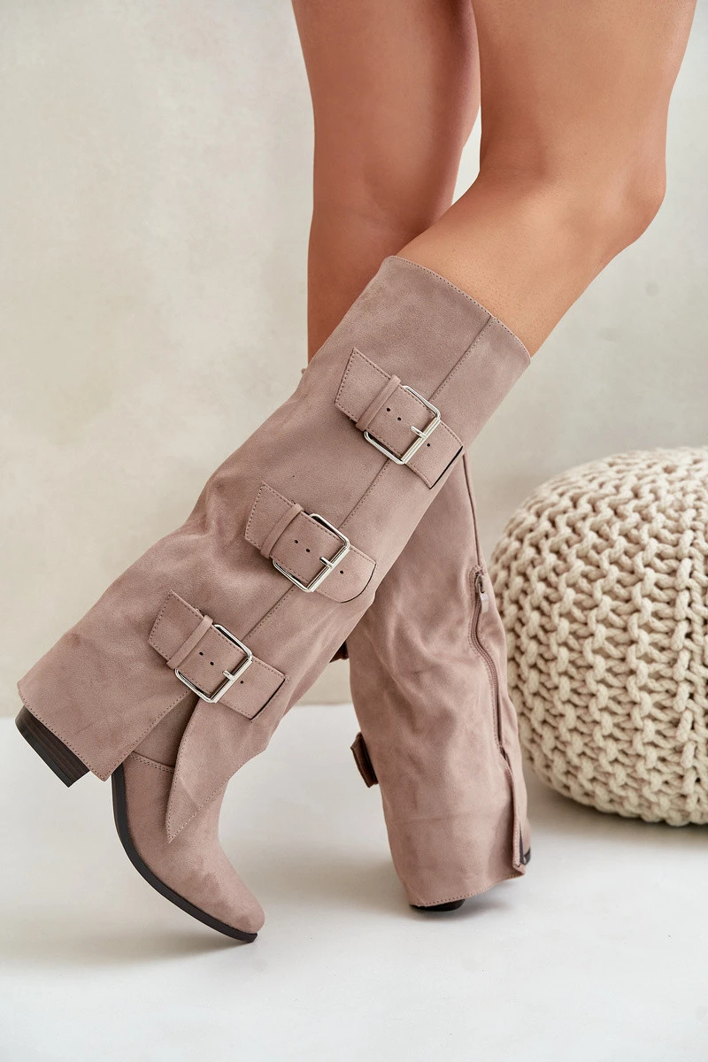 Kozačky Na Podpatku S Svrškem A Přezkami Béžové model 21679662 - Boto