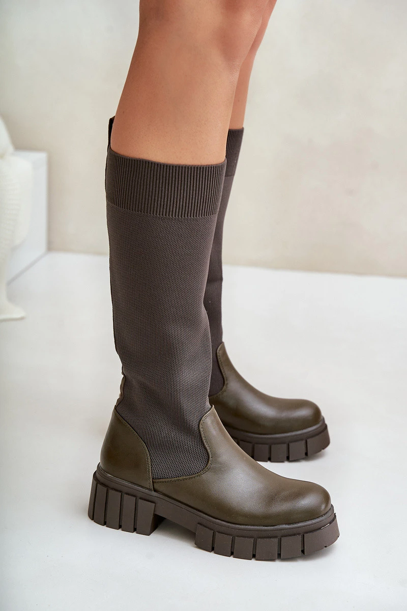 Klasické dámské kozačky byly vyrobeny z kombinace eko kůže a textilního materiálu. Jsou umístěny na plochém podpatku a jemné platformě se žlábky. Tyto boty mají zateplenou stélku. Tyto klasické kozačky se skvěle hodí k podzimním stylizacím. Módní střih, který bys měla mít! Při výběru velikosti se řiďte tabulkou velikostí.