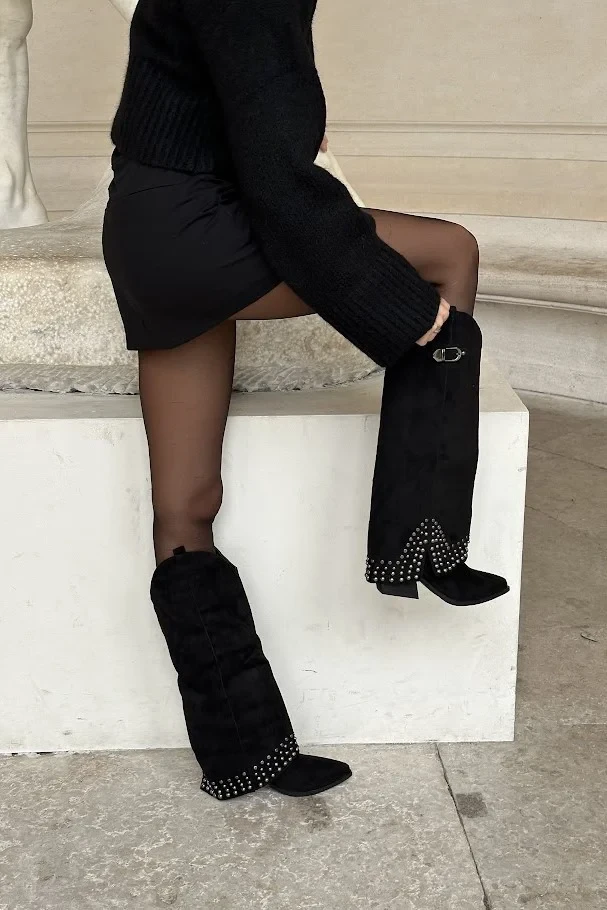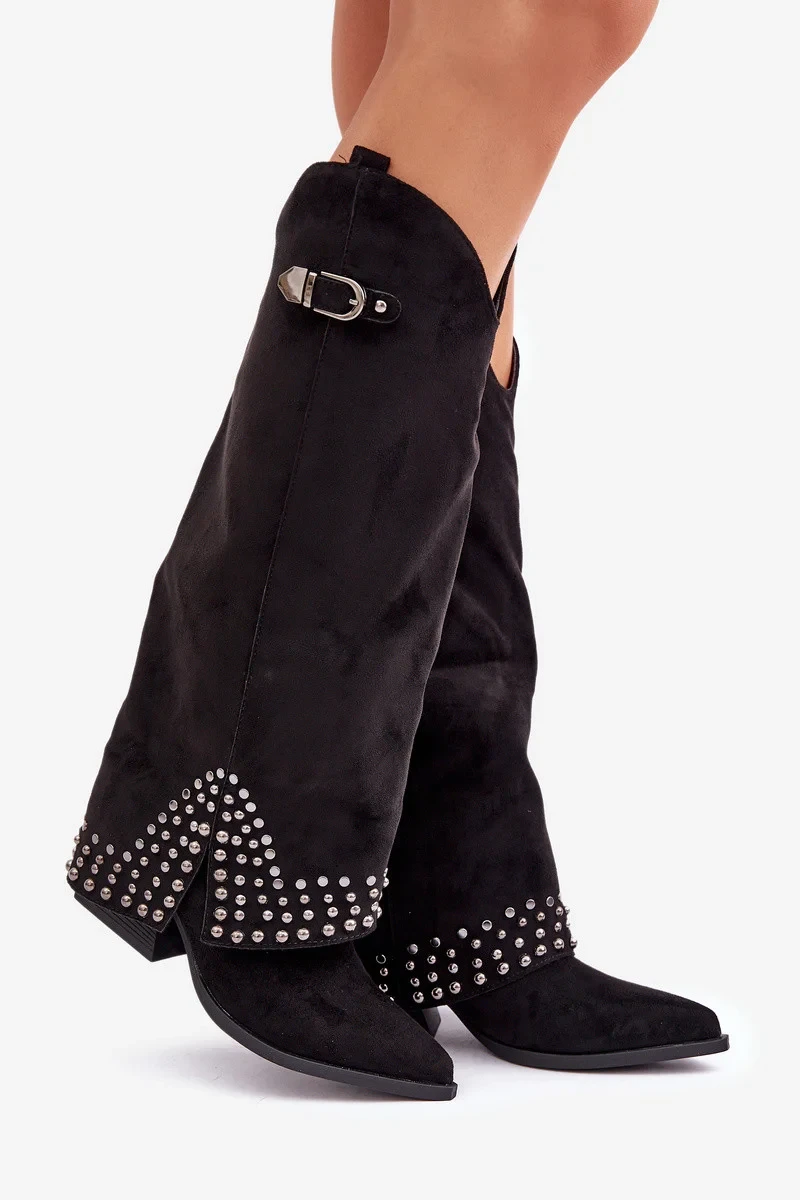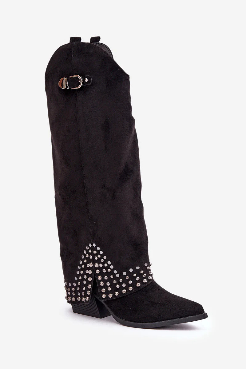 Kozačky s ohrnutým svrškem na podpatku černé Iveliri