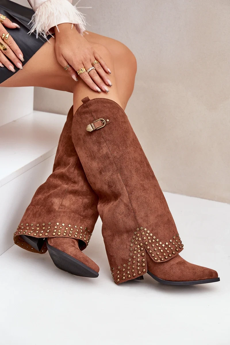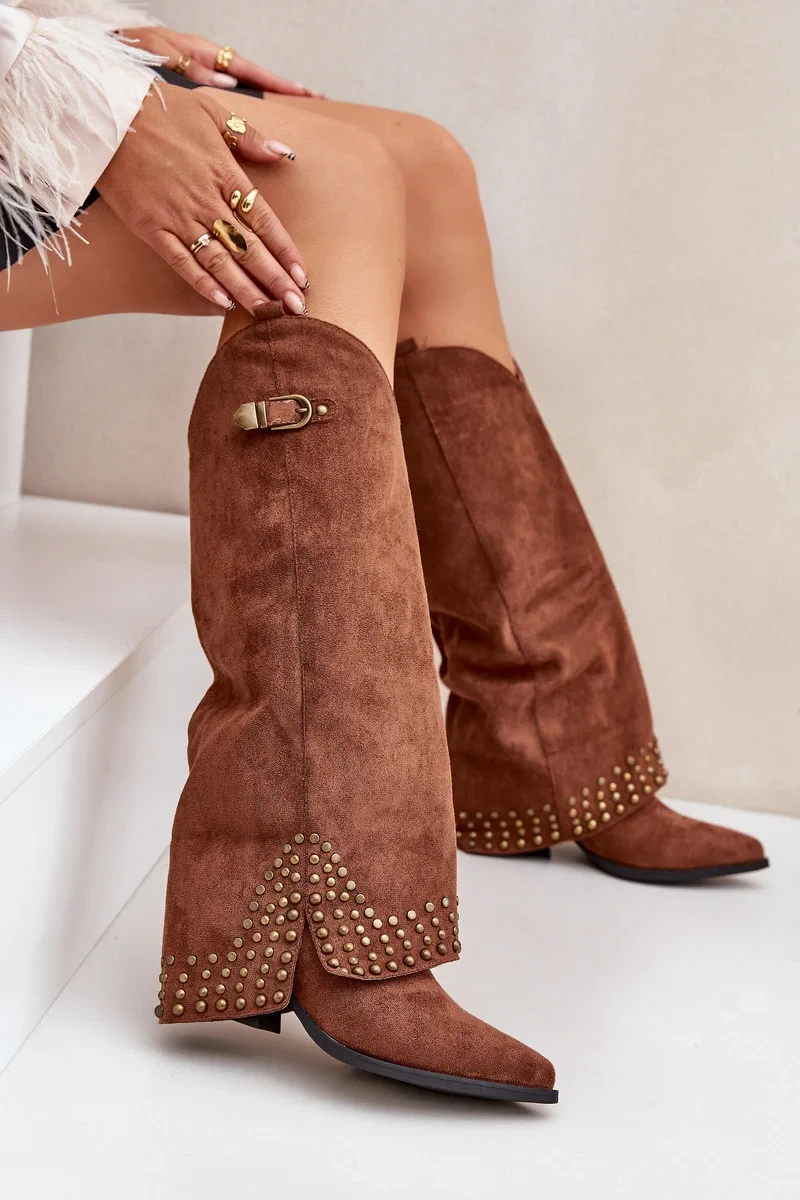 Kozačky s ohrnutým svrškem na podpatku hnědé Iveliri