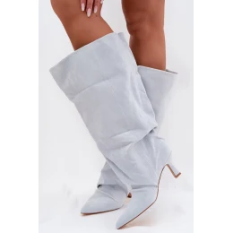 Kozačky s širokým horním lemem a našitím na podpatku Modré Harela